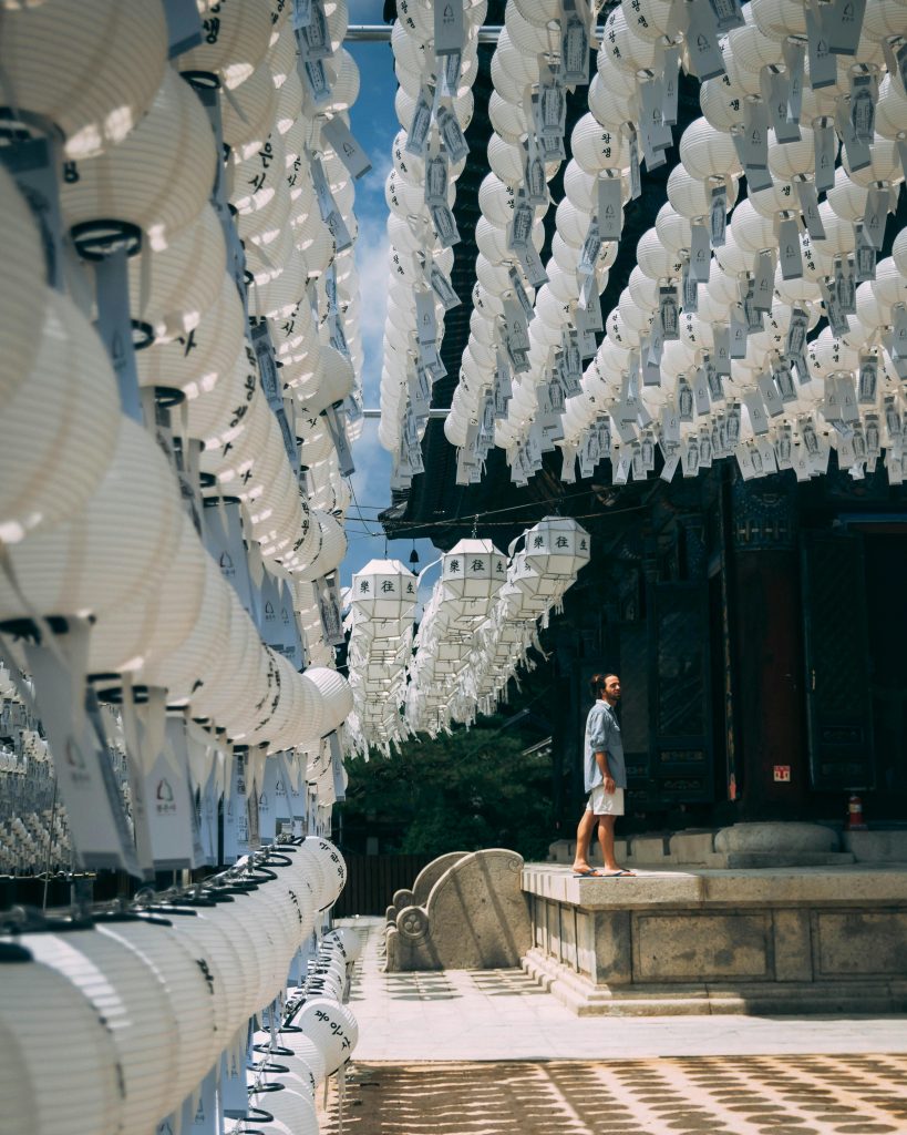 Templo Jogyesa: ubicado en pleno centro de la ciudad, este templo ofrece un espacio de paz y meditación, rodeado de coloridos faroles y la esencia del budismo coreano. Un lugar ideal para desconectar del bullicio urbano. 🧘♀️🌸